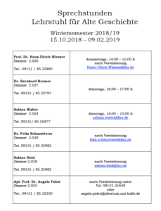 Sprechstunden im Wintersemester 2018/19