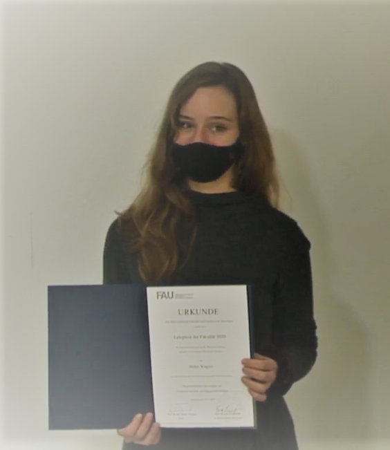 Die Philosophische Fakultät der FAU hat im Jahr 2020 erstmals einen fakultätseigenen Lehrpreis ausgeschrieben. Sie würdigt damit innovative Lehrkonzepte, die zu einer Weiterentwicklung der Lehre an der Philosophischen Fakultät und dem Fachbereich Theologie beitragen. Ausgezeichnet wurden Dr. Dipl.-Psych. Anna-Carlotta Zarski vom Lehrstuhl für Klinische Psychologie und Psychotherapie sowie Helen Wagner vom Lehrstuhl für Neueste Geschichte und Zeitgeschichte.