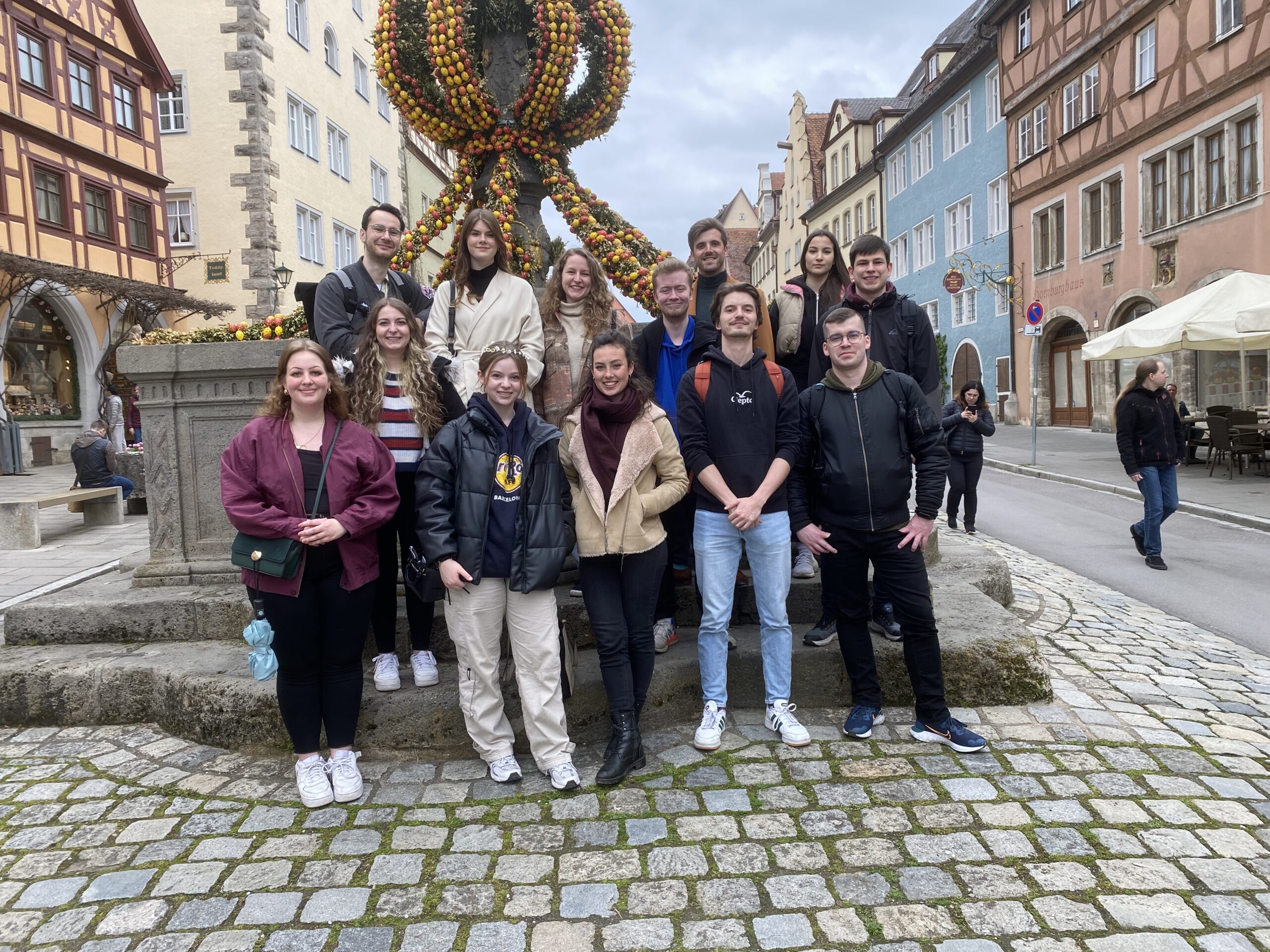 Am 29. April 2023 fuhren 12 Studierende der FAU sowie einige interessierte Externe im Rahmen des Proseminars „Kosmos Stadt: lokal, regional, global“ mit Florian Geidner nach Rothenburg ob der Tauber. Wider Erwarten störungsfrei und pünktlich per Bahn dort angelangt begann man gegen Mittag mit der Besichtigung der Stadtbefestigung. Barbakanen und Heraldik konkurrierten dabei indes manchmal erfolglos mit den Schildkröten in den Wassergräben um die Aufmerksamkeit der Studierenden.