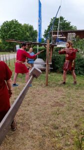 Am Freitag 28.7., sind Departments der FAU am Altmühlsee gewesen, um auf beiden Römerbooten, auf der FAN und Danuvina zu fahren. Es kam hinzu eine Gruppe aus England und viele weitere Gäste zum römischen Nachmittag.