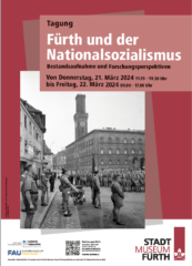 Das Stadtmuseum Fürth lädt am 21. und 22. März 2024 zur Tagung „Fürth und der Nationalsozialismus – Bestandsaufnahme und Forschungsperspektiven“ ein.