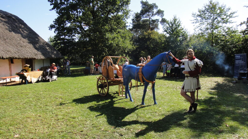 Doch damit nicht genug. Längst sind andere Ziele anvisiert: Gebaut ist bereits ein längsgefederter Keltenwagen, der ein privilegiertes Transportmittel und Kriegswaffe in der La Tène Zeit bis hin zum Boudicca Aufstand im 1. Jh. n.Chr. (sowie darüber hinaus) war. Ein quergefederter römischer Reisewagen ist in Produktion. Gleich nach den feierlichen Tagen rund um die Danuvina und die Alchmona beginnen die Vorbereitungen für die Tests der genannten Wägen, deren Fahrkomfort ermittelt werden soll. Dafür werden sie in einem nahen Gestüt auf die Haflinger-Pferde angepasst, was kein selbstverständliches Unterfangen ist, müssen die Pferde erst an die Wägen gewohnt und das Geschirr – historisch korrekt – angepasst werden. Diese Tests sind noch im Winter anvisiert, das nächste Highlight.