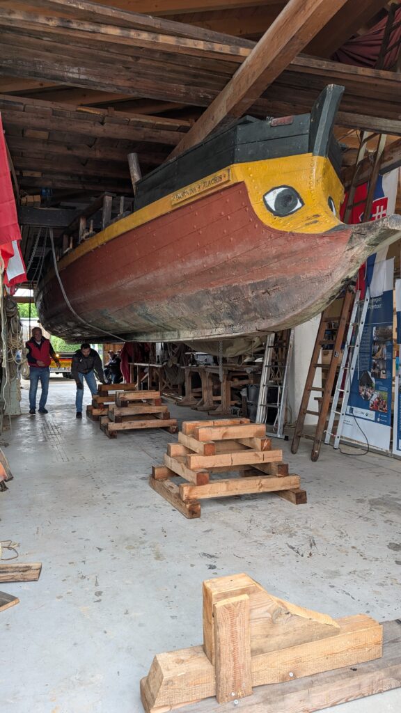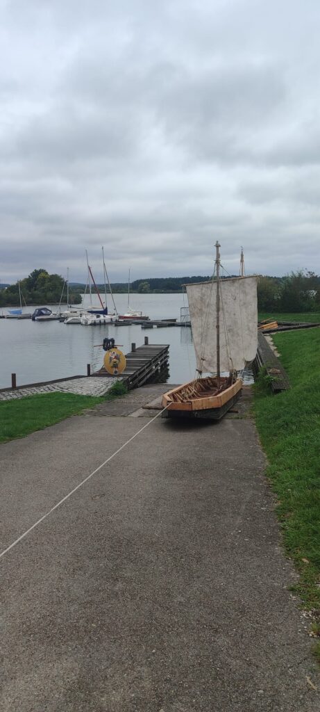 Andere Engagements werfen ihren Schatten voraus. Fest engagiert ist unser Keltenwagen beim Keltenfest am Sonntag und muss dafür vorbereitet werden. Die mit uns kooperierende Melanchthonschüler helfen uns aber bei den letzten Arbeiten, sowohl am Segel der Alchmona rediviva, als auch am Boot selbst (Baumarken entfernen) und am Laufboden des Prahmbootes. Aber auch der Kastenwagen des römischen Reisegefährts wird fortgesetzt. Zuletzt wurde die Fahrt nach Ungarn vorbereitet, damit am Sonntag der Hafen in Südungarn, Baja, angefahren weden konnrw. Am Montag wurde die Danuvina aus der Donau gehoben und traf auf einem ungarischen Schwerlaster die 1000 km Rückreise an und konnte am Dienstag gegen 11 Uhr in Schlungenhof / Gunzenhausen am FAU-Römerzentrum beim Altmühlsee eintreffen.