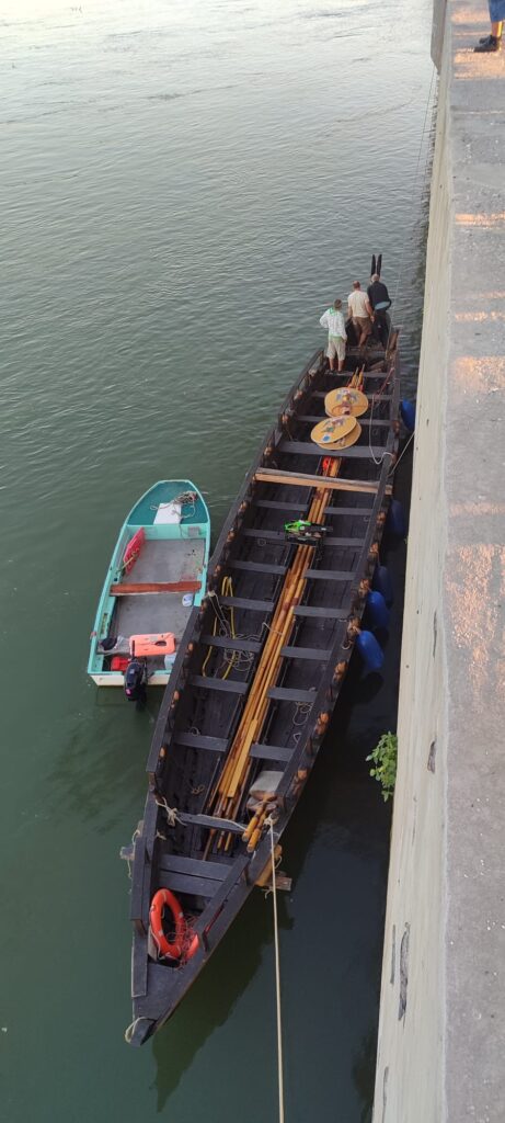 Fiebrig wurde der Dienstag vorbereitet, während noch andere Aktivitäten liefen. Am Freitag, 19.9., wurden Rudertests mit unterschiedlichen Aufhängungen getestet, um die nächsten Anträge und wissenschaftlichen Aufsätze demensprechend ausstatten zu können. Die Leistungsspektren und -möglichkeiten antiker Riemen und ihrer Aufhängungen müssen gegen die Alternativen genau gemessen und evaluiert werden.