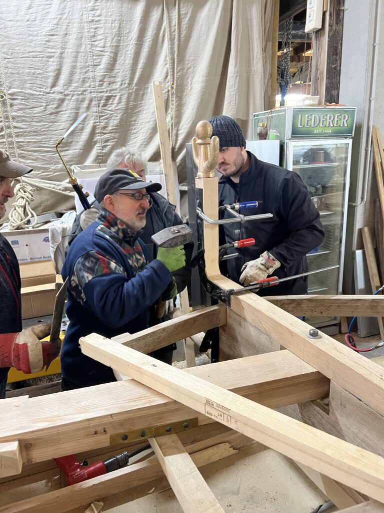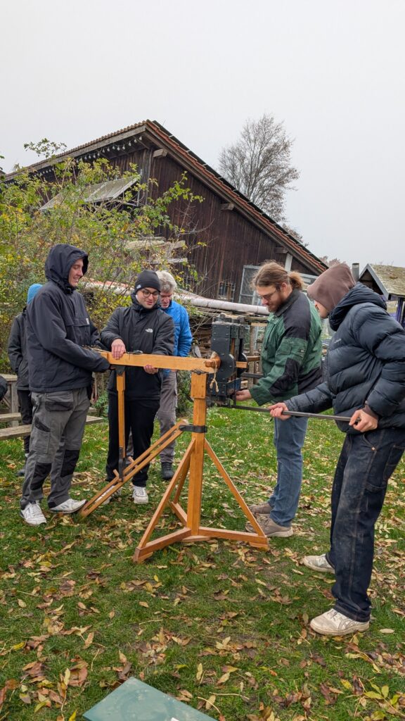 Am Freitag, den 7. November, werden die, in der Museumsstellmacherei Langenrehm bei Hamburg (Kabenweg 7, 21224 Rosengarten, Nebenstelle des Freilichtmuseums am Kiekeberg) hergestellten, sechs römische Segmenträder mit Eisenreifen versehen, um damit zwei römische Wagen auszustatten.