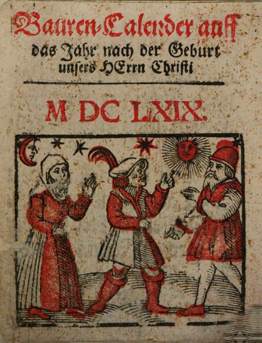 Abb.: BSB München, Chrlg. 324 q, fol. 1 (Bauren-Calender auff das Jahr nach der Geburt unsers Herrn Christi MDCLXIX, Nürnberg: Endter [1668]), URN: https://mdz-nbn-resolving.de/urn:nbn:de:bvb:12-bsb10392752-0 [23.01.2026].