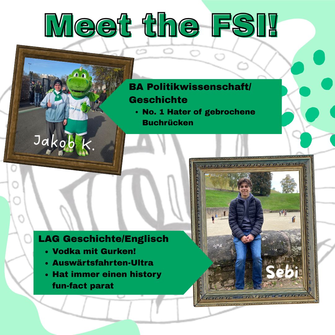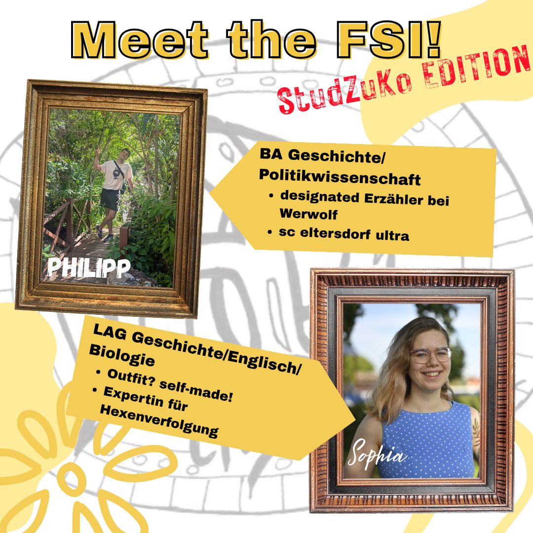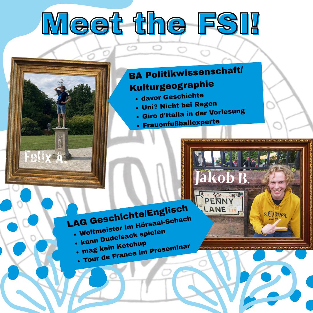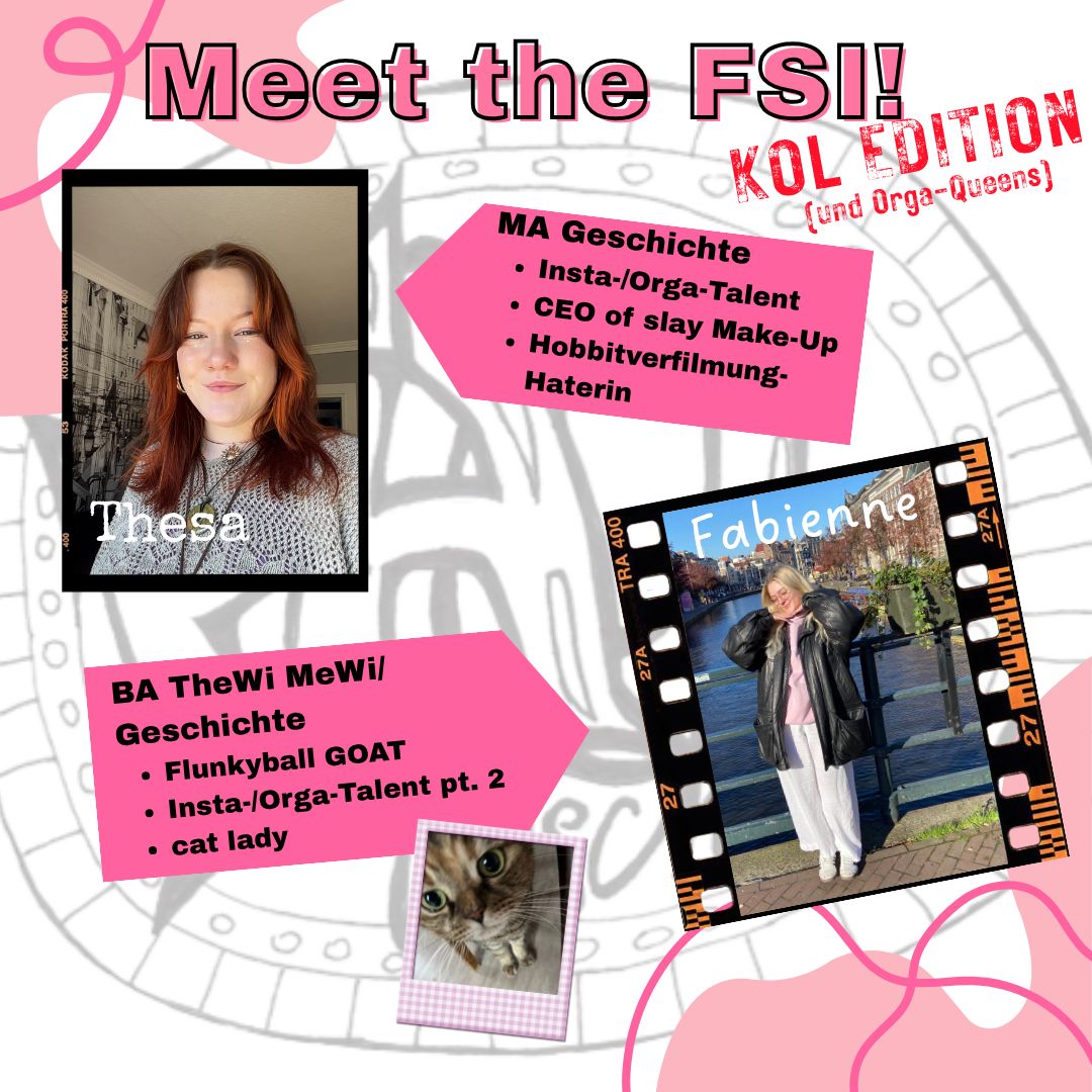 Zudem sitzen unsere Vertreter*innen in zwei der wichtigsten Gremien, der Kollegialen Leitung und der Studienzuschusskommission – dazu unten mehr. Wenn ein Lehrstuhl neu besetzt wird, gibt es einen Berufungsausschuss, in dem ebenfalls meistens zwei FSI-Mitglieder sitzen. Und natürlich pflegen wir Kontakte zu Dozierenden, Förderverein und Ehemaligen und helfen gerne, wo wir helfen können!