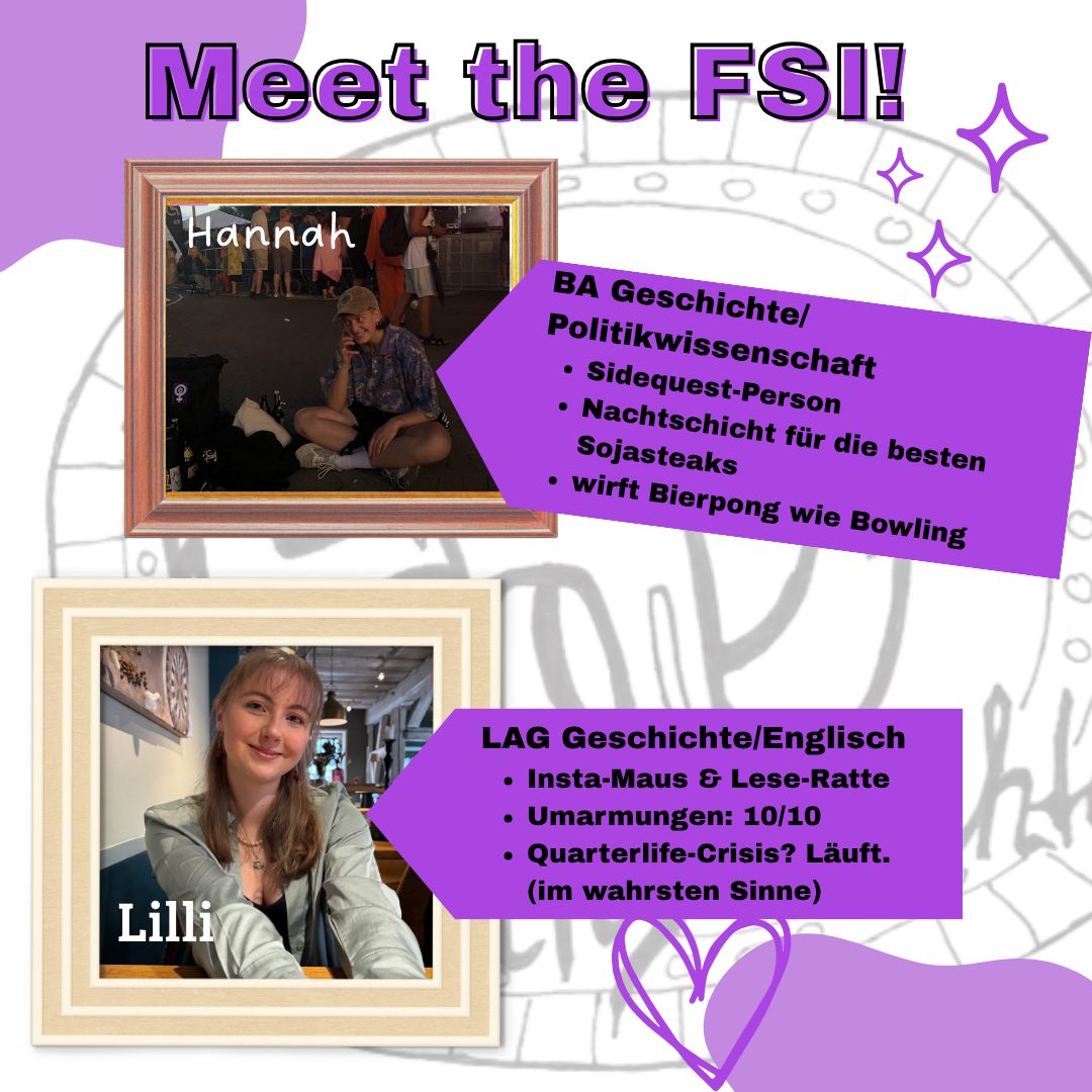 Bei der FSI handelt es sich um eine Gruppe von Studis, die das universitäre Leben am Department mitgestalten wollen – sowohl organisatorisch, als auch gesellschaftlich. Dafür gibt es von uns eine Reihe von Veranstaltungen, zu denen Studierende wie Dozierende gleichermaßen herzlich eingeladen sind – beispielsweise unsere regelmäßigen Barabende, das all-semesterliche Hörsaalquiz oder, ein Höhepunkt des akademischen Jahres: Unser Sommerfest, das jedes Jahr unter einem epochalen Motto steht.